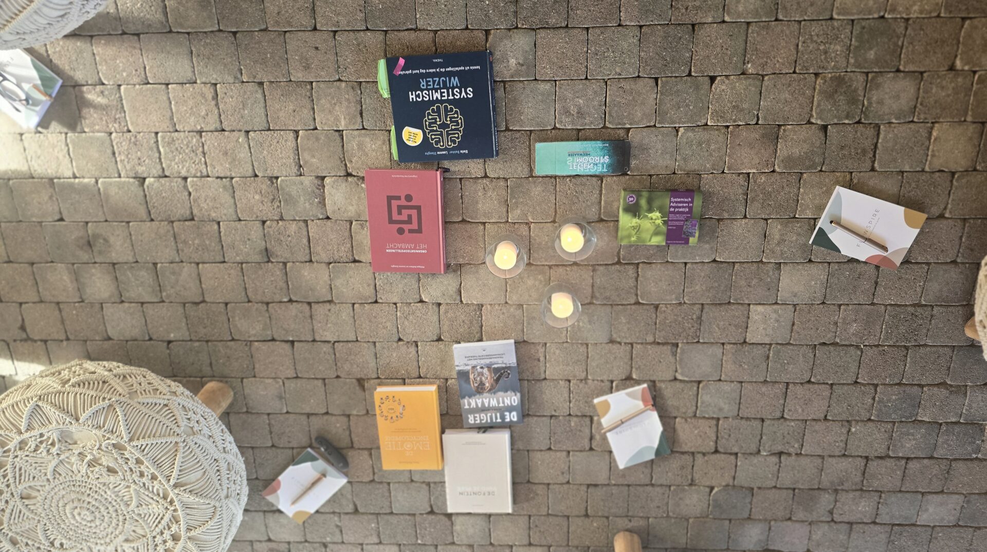 Ik nam ze mee in een proeverij rond systemische principes. Met oefeningen die rekening hielden met hun specifieke context gingen we aan de slag met broesli blokken, vloerankers en lego blokken. Er was geen weerstand, alleen nieuwsgierigheid en openheid. Het stroomde.